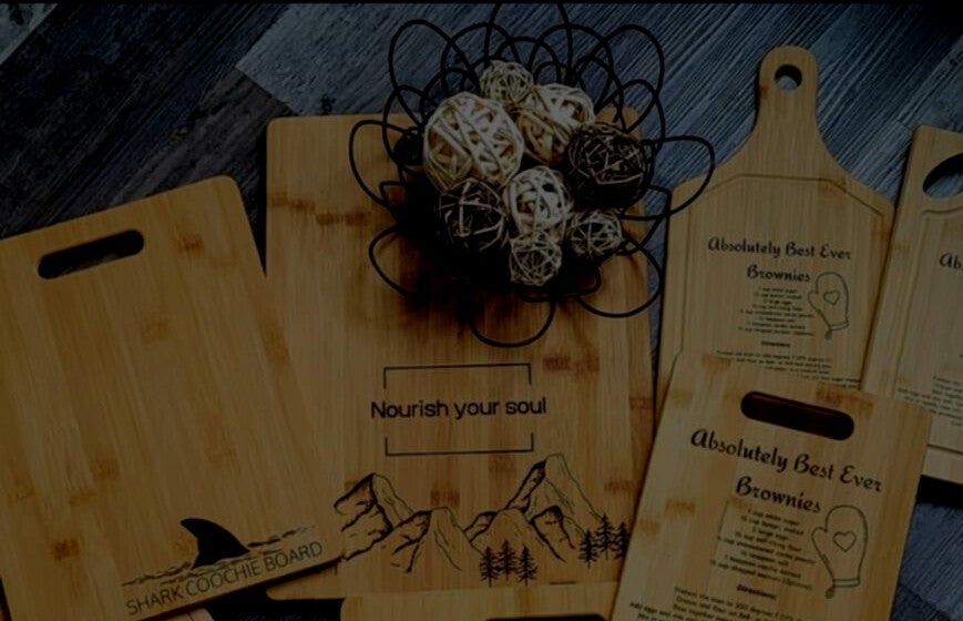 Custom-engraved cutting boards, jewellery, dog tags & decor made just for you.